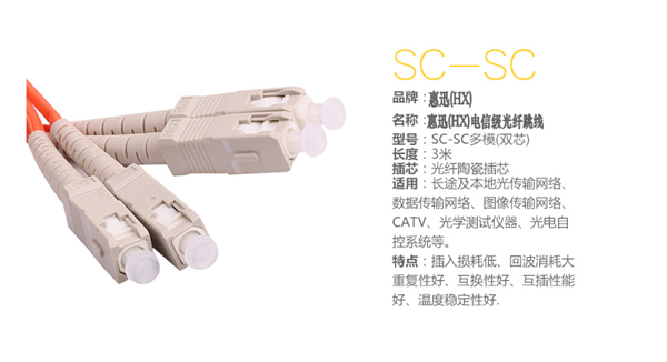 惠迅 SC-SC室內光纖跳線連接頭采用壓-拉式設計,易插拔。