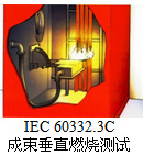 有些資料上介紹IEC 60332.1等同于UL的CM級要求(IEC 60332.2是細徑纜線的測試方法,即不能使用60332.1測試時使用的替代測試方法)、IEC 60332.3C等同于UL的CMR級要求。事實上,這4個標準的測試方法并不相同,無法直接對比。因此,對于上述說法只能姑且聽之。