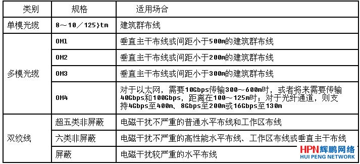 光纜通常應用于建筑群子系統和垂直(主干)子系統,部分應用于對傳輸速率和安全性有較高要求的水平布線子系統;雙絞線則通常應用于水平布線子系統,也可應用于投資較少,且對傳輸速率要求不太高的垂直(主干)子系統;而同軸電纜很少應用于綜合布線系統。線纜類型及其適用場合如表3—3所示。