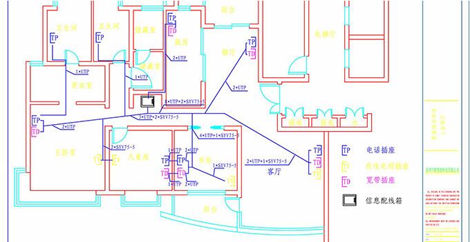 4、進線穿線管2-3根從戶外引入家用信息接入箱,出線管線管再從家用信息箱到各個戶內信息插座。布設的穿線管都應該采用鋼管或是硬質PVC管,即阻燃硬質聚氯乙烯管。