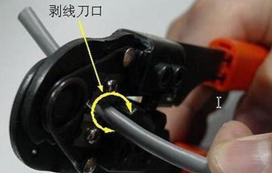 第二步 :剝線。用到網線鉗的剪線刀口將線頭剪齊,再將線頭放入剝線專用的刀口,稍微用力握緊壓線鉗慢慢旋轉,讓刀口劃開雙絞線的保護膠皮。把把雙絞線的灰色保護層剝掉。