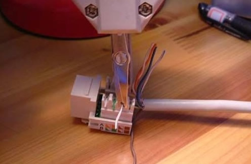 c、打線鉗有內外之分,外側較長,打下去之后會切掉外側多余的線路,所以,如果不小心將外側放在了網線插座的內側則會裁斷網線。