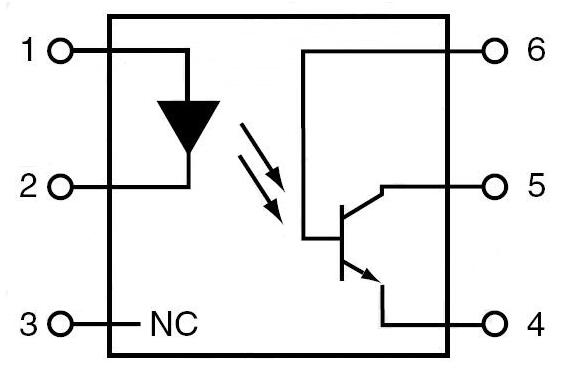 ( ALT標簽:光電耦合器之內部結構圖 三極管接收型 6腳封裝)