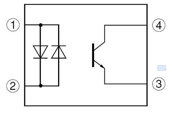 (ALT標簽: 最常用的光電耦合器之內部結構圖 三極管接收型 4腳封裝)