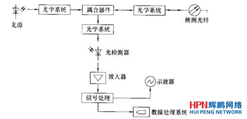用脈沖發生器調制一個光源,使光源產生窄脈沖光波,經光學系統(透鏡)耦合人光纖,光波在光纖中傳輸時出現散射,散射光沿光纖返回,途中經一耦合裝置,經光學系統(透鏡)輸入到光電檢測器.變成電信號,再經放大及信號處理,送人示波器顯示。光時域反射儀的工作原理框網。