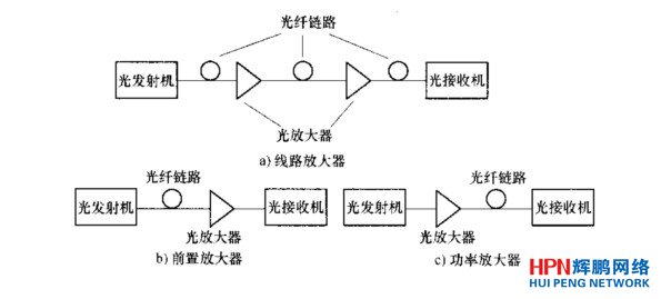 應用在單模光纖通信系統中,光纖的色散影響較小,限制傳輸距離的主要岡素是光纖的衰減,所以用光放大器可以補償傳輸損耗。它適用于超長距離傳輸的系統,如圖所示。
